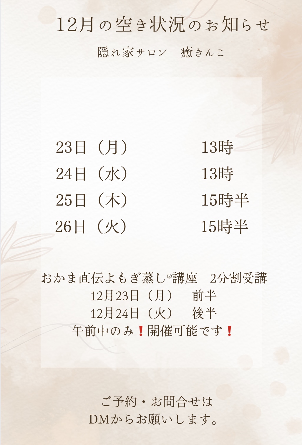 2024年!ラストチャンス!受講可能日公開です📝